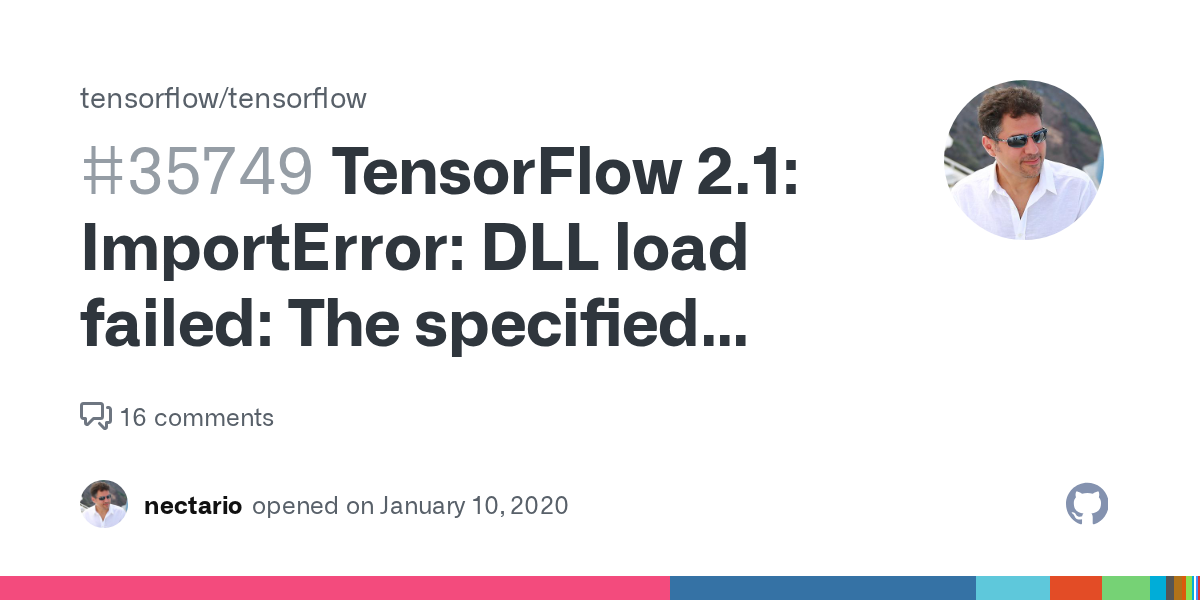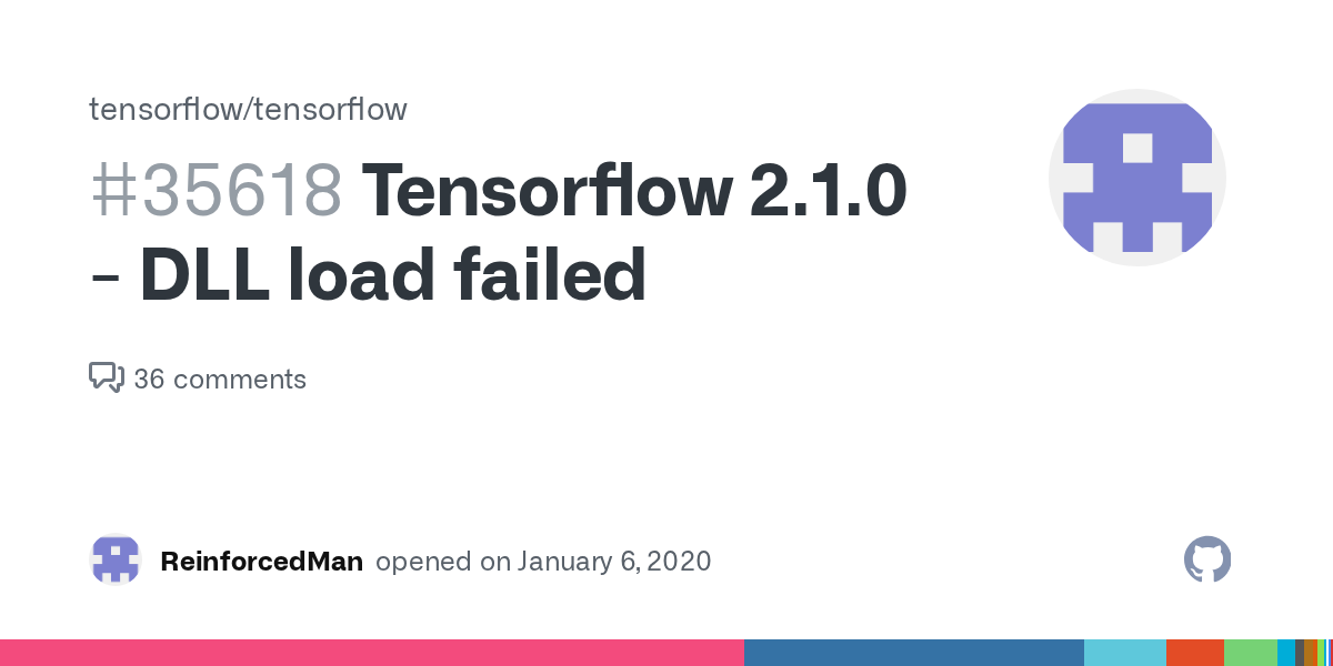 Tensorflow 2.1.0 - DLL load failed · Issue #35618 · tensorflow/tensorflow